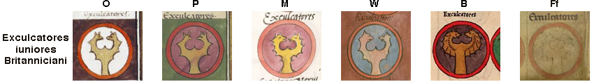 In the western half of the empire, the Exculcatores iuniores Britanniciani is listed (98/9.82 in Ingo Maier's numbering scheme) as one of auxilia palatina units in the Magister Peditum's infantry roster. Its shield pattern (94#16), as shown in various manuscripts under the plain label (94.q) Exculcatores, is as below: